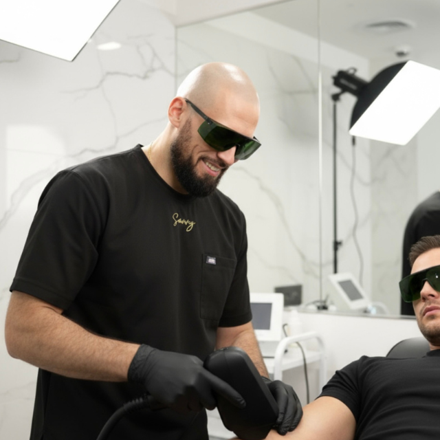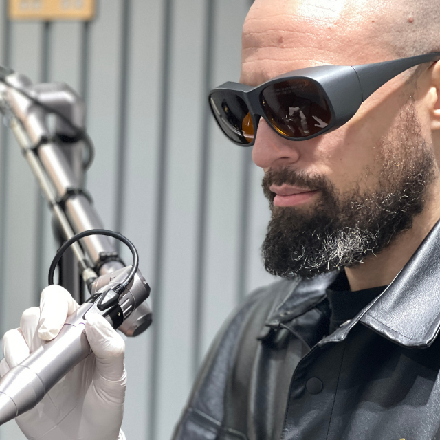 Consultation & patch test: assessing your tattoo, skin type and suitability.