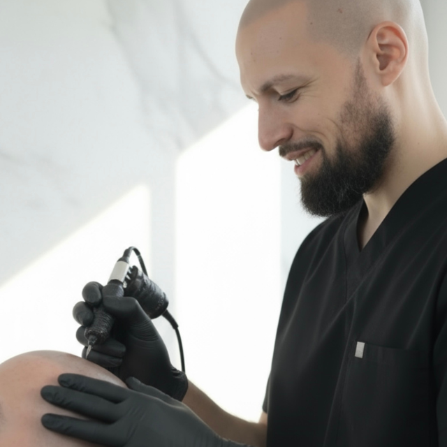 Specialist Experience: Our lead technician, Alex McKenzie, is a highly trained SMP artist with years of experience transforming hairlines and restoring confidence.